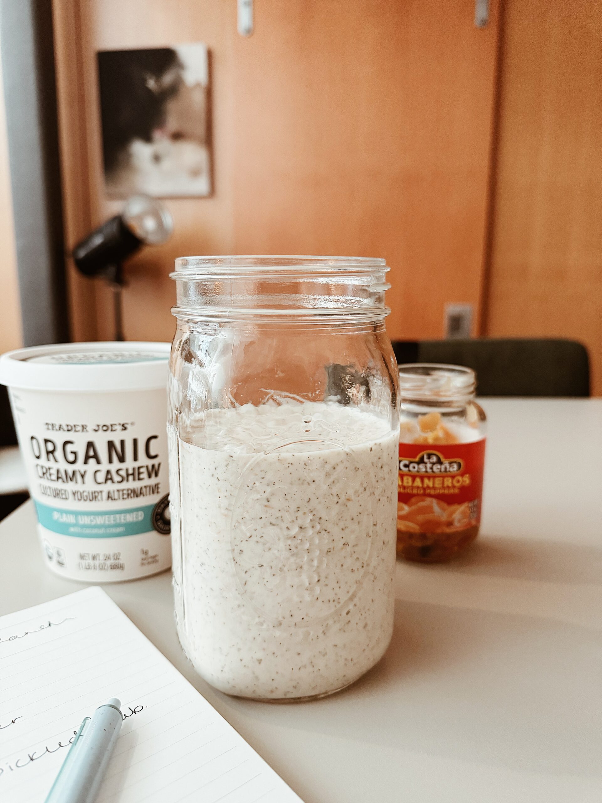 The habanero, onion, and carrot blend beautifully into some dairy-free yogurt. I typically use yogurt instead of mayo and the organic cashew yogurt from Trader Joe’s, the cashew yogurt from Forager, or the almond milk yogurt from Kite Hill are my top choices. If you can find all three, opt for the TJ’s one. It has the best texture for dressing or dip in my opinion.